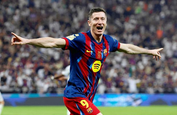 Dobrze było to widać w rozgrywanym w niedzielę w Arabii Saudyjskiej El Clasico. Kiedy Frenkie De Jong lub któryś z obrońców Barcelony zagrywali dłuższe podania za plecy obrońców Realu, ruszali do nich Fermin Lopez i Pedri, środkowi pomocnicy. Zadaniem Lewandowskiego w tego typu schematach było wyciąganie za sobą stoperów rywala poprzez ruch w stronę… własnej bramki. Zagrania, za które można było go chwalić, zwykle opierały się na jednym mądrym dotknięciu piłki. Podaniu w ciemno na skrzydło do Lamine’a Yamala, mimo ścisłego krycia ze strony obrońcy. Zgrania na ścianę do któregoś z partnerów. Z 661 podań wymienionych przez graczy Barcelony w niedzielny wieczór, do Lewandowskiego należało osiem. Do przeszło 800 kontaktów z piłką, jakie zanotowali gracze Flicka, Polak dołożył tylko 20. Jednocześnie jednak aż osiem z nich w polu karnym rywala, a cztery zakończone strzałami. Co oznacza, że aż 20 proc. wszystkich kontaktów z piłką Lewandowskiego było uderzeniami na bramkę. To bardzo wysoki odsetek. Polak w budowaniu akcji uczestniczył tylko marginalnie, ale w ich wykańczaniu był jak najbardziej widoczny. Niemiecki trener ogranicza aktywność Lewandowskiego do tego, co Polak potrafi absolutnie najlepiej.