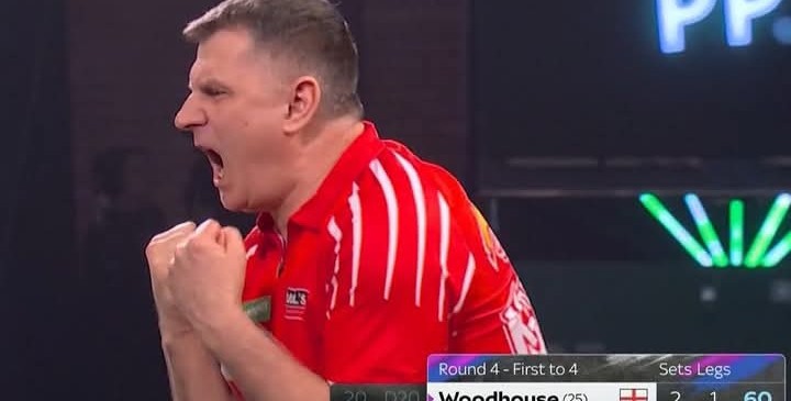 Początek spotkania należał do Ratajskiego. Pierwszy set wygrał 3:1, imponując świetnymi kolejkami i średnią przekraczającą 106 punktów. Pomogły także problemy Woodhouse’a, który wykorzystał zaledwie jedną z siedmiu prób na podwójnych. Druga partia przyniosła jednak zupełnie inny obraz gry. Anglik wyraźnie się rozkręcił – dwukrotnie rzucił 180, popisał się wysokim finiszem i skutecznie wykorzystał momenty słabości Polaka na doublach. Po dwóch setach na tablicy wyników widniał remis 1:1.