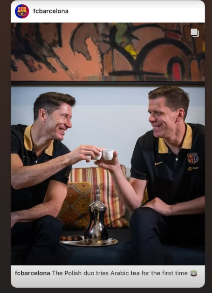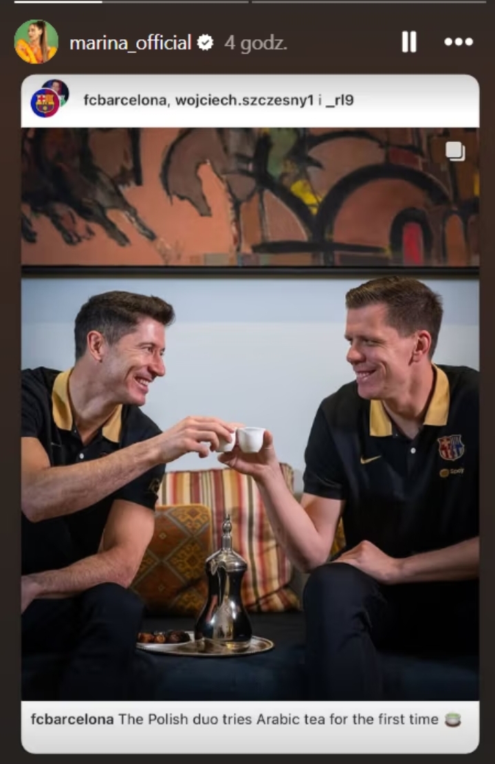 FC Barcelona opublikowała na Instagramie wideo z Robertem Lewandowskim i Wojciechem Szczęsnym. “Polski duet po raz pierwszy próbuje arabskiej herbaty” — czytamy w opisie. Na wpis zareagowały m.in. żony piłkarzy.